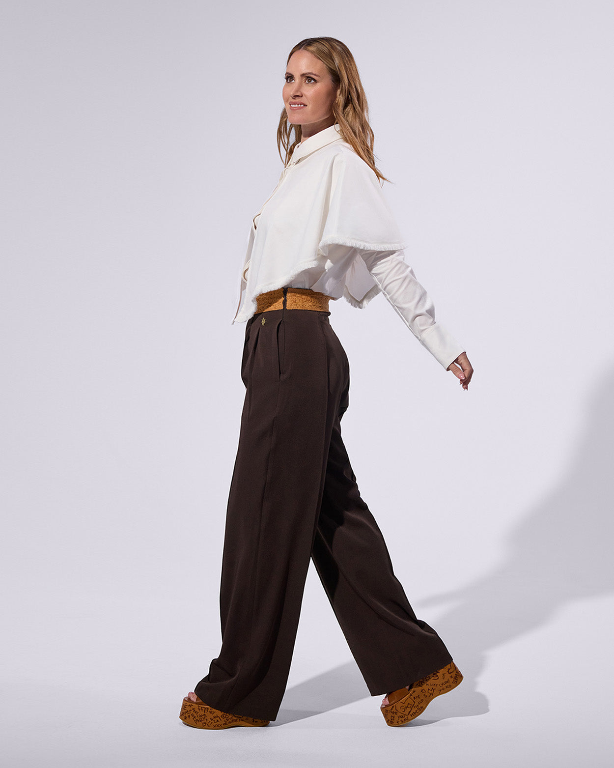 Die gerade geschnittene Cady-Hose ergänzt den Blazer perfekt und setzt auf stilvolle Details: Das dezente Flock-Band entlang der Seiten sorgt für einen modernen Look, während Bundfalten vorne und hinten für eine elegante Silhouette stehen. Praktische Schubtaschen und ein seitlicher Reißverschluss vereinen Komfort und Funktion.