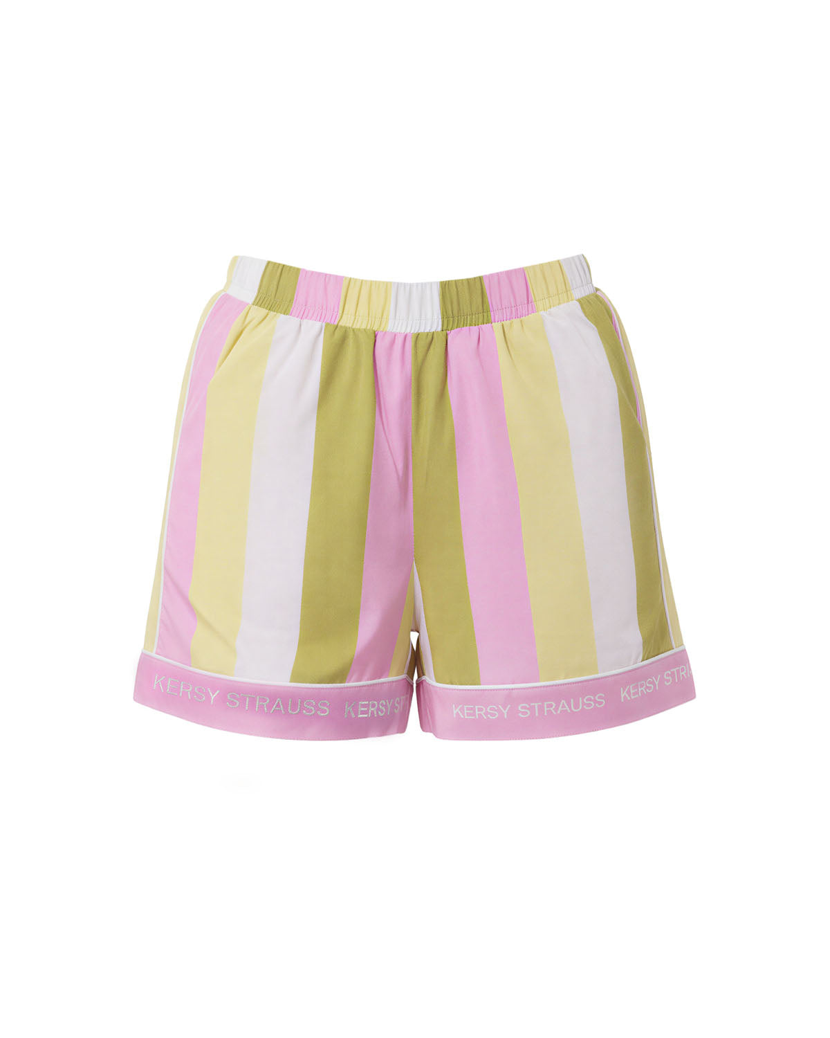 Die farbenfrohe Baumwollshorts im vertikalen Streifendesign ist dein Go-To für den Sommer. Wohlfühlfaktor garantiert dank geraffter Taille und elastischem Bund. Die Bordüre mit KERSY STRAUSS Stickerei verleiht dem Design das gewisse Etwas. On top besitzt die Shorts zwei praktische Seitentaschen.
