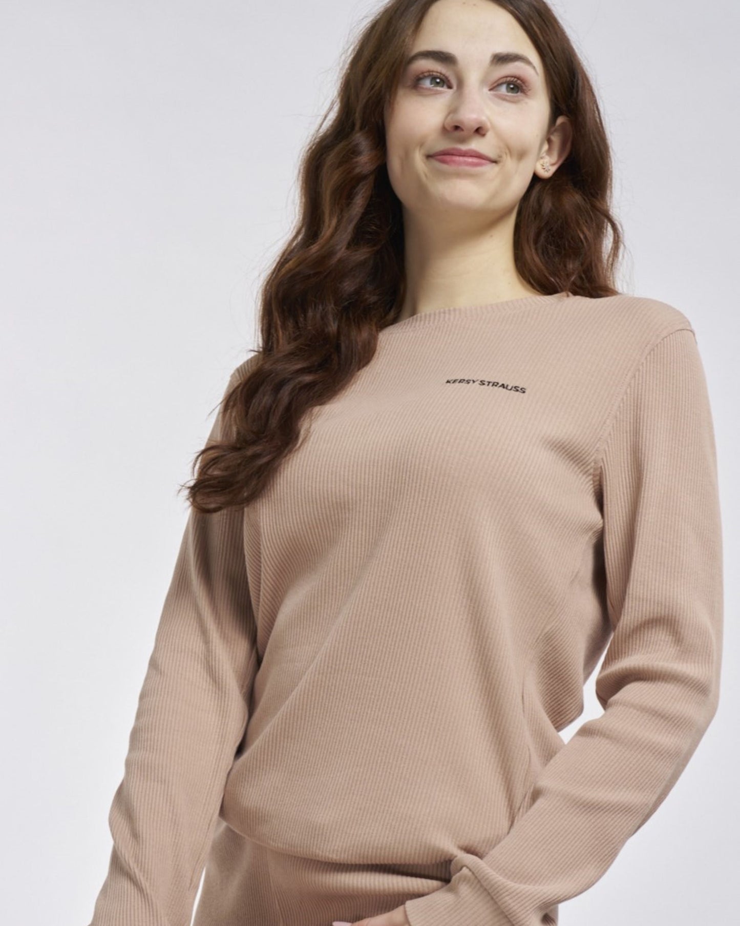 The KERSY Studio Top is the perfect pajama top thanks to its comfortable ribbed fabric. Its loose fit is accentuated by the KERSY branding embroidery, which is discreetly embroidered on the chest.