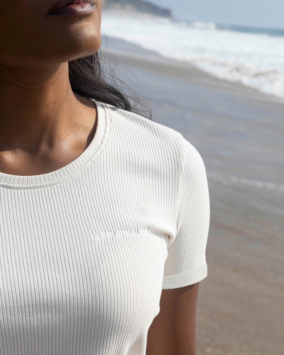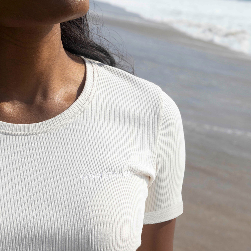 The KERSY STUDIO pajama T-shirt is the perfect summer pajama set – lightweight, comfortable, and stylish all at once! The soft ribbed material ensures a particularly comfortable fit, while the loose fit allows for maximum freedom of movement. Fine lace inserts on the sleeves give the top a feminine, playful touch and make it a real eye-catcher. The subtle KERSY branding embroidery on the chest adds a sophisticated detail. Perfect for pairing with the KERSY STUDIO pajama shorts – for a wonderfully beautiful and comfortable look, whether for relaxing, sleeping, or simply feeling good.