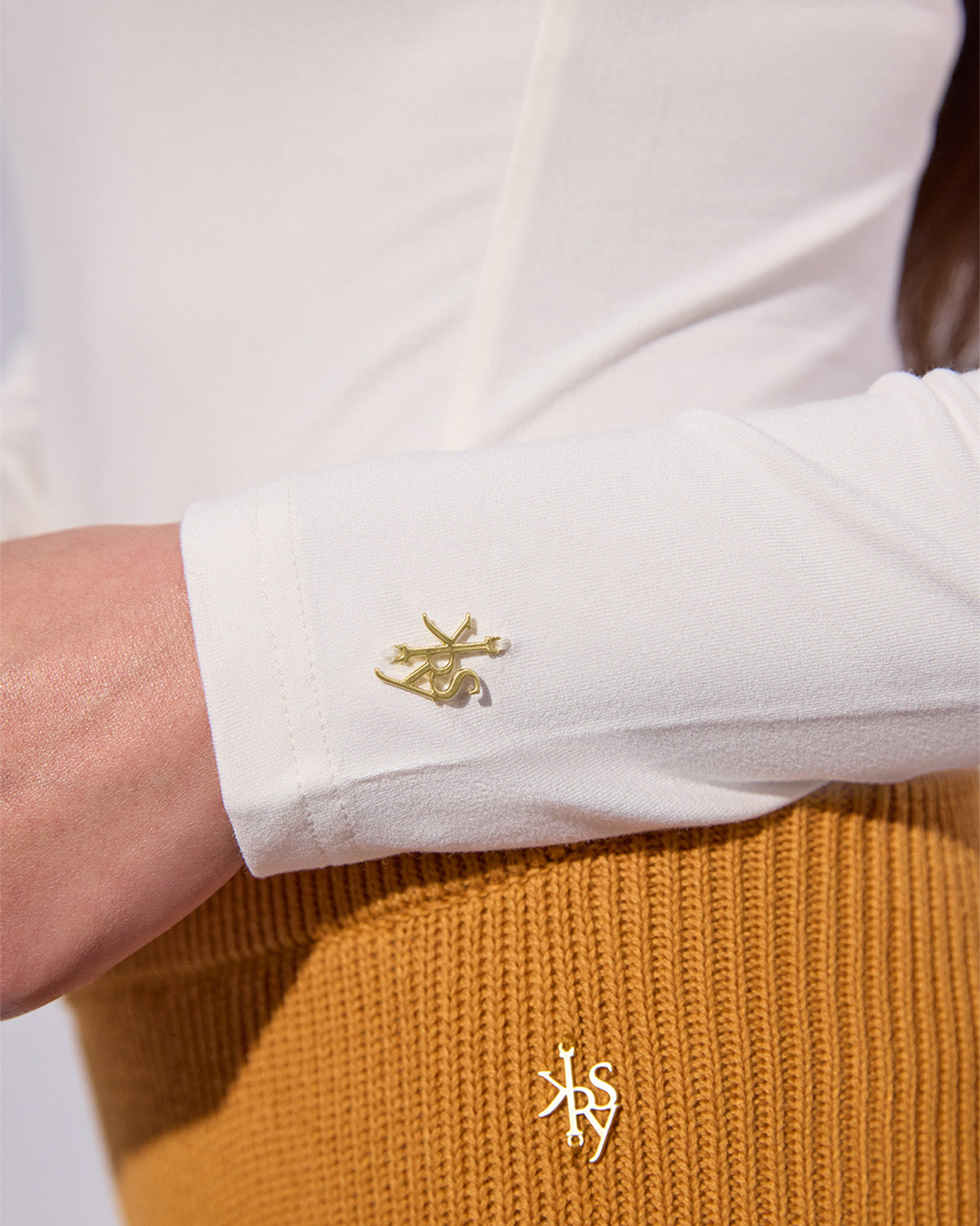This turtleneck flatters your silhouette with a soft, smooth fabric that feels like a second skin. The cut accentuates the waist while creating a slim silhouette. The subtle gold KERSY logo at the bottom left adds a stylish accent that completes the design. A versatile essential that effortlessly combines understatement and luxury.