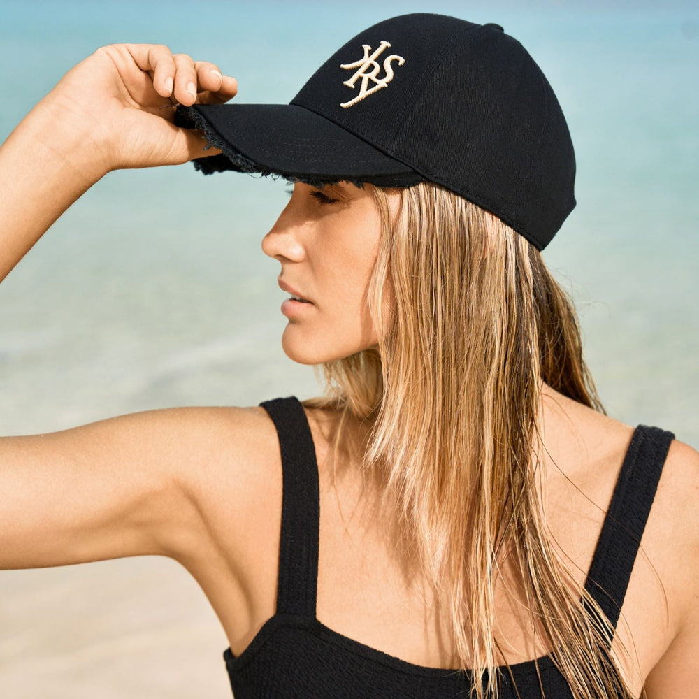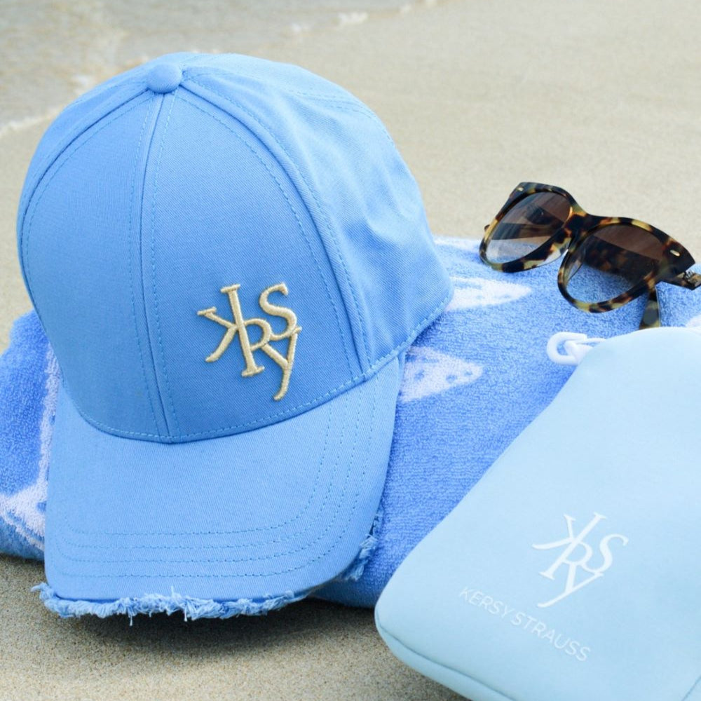 Casquette avec frange et broderie KERSY couleur champagne sur le devant. Casquette réglable à l'arrière.
